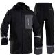 The Grundéns Sunnan rain suit is made of PU-coated polyester. Jacket with detachable and adjustable hood, zipper with storm flap, ventilation opening in the back, corduroy-lined collar, front pockets, chest pocket with zipper, and adjustable cuffs. Trousers with elastic waistband and drawstring, as well as adjustable leg cuffs. Reflectors on both the jacket and trousers.